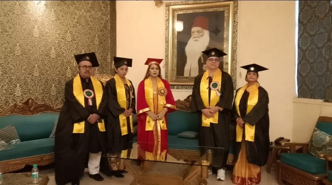In this series, on March 7, 2024, for the first time in Ali Garh Muslim University, honorary doctorate degrees were awarded through the collaboration of American universities, Royal American University, American East Coast University, University of RT USA, National American University, and UNI American Eagles. . Let me tell you that in these four American universities, I am serving as Chancellor and as the Pt. founder and president of UNI American Eagles University. And to date, honorary doctorate degrees have been awarded from American universities to American Presidents, Canadian Prime Ministers and First Ladies of Canada, Canadian Parliament members, the President of Turkey, former Chancellor of Austria, and American Parliament members. For this purpose, unique programs have been organized in the United States, Canada, Europe and Asia. The leadership of the program held in Ali Garh Muslim University was done by Dr. Ana Dehlvi, Vice President of American University programs. In which Dr. Rajani Raghav, Dr. Motaher Zerger, Dr. Shazia Naaz, Hude Times founder Dr. Mustaqeem Makki, and worldwide reputable personalities participated. From the American Eagles University, the chairman of India’s largest Urdu website Rekhta, Sir Sanjiv Saraf, was awarded an honorary certificate for his exceptional contributions to society. Which was received by Moin Shadab on behalf of Sanjive Saraf.